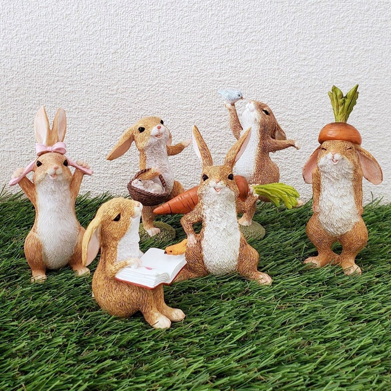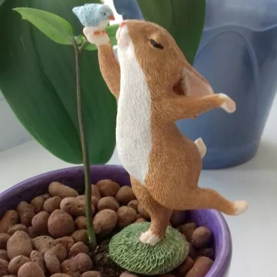 ウサギ 置物 小鳥とダンス