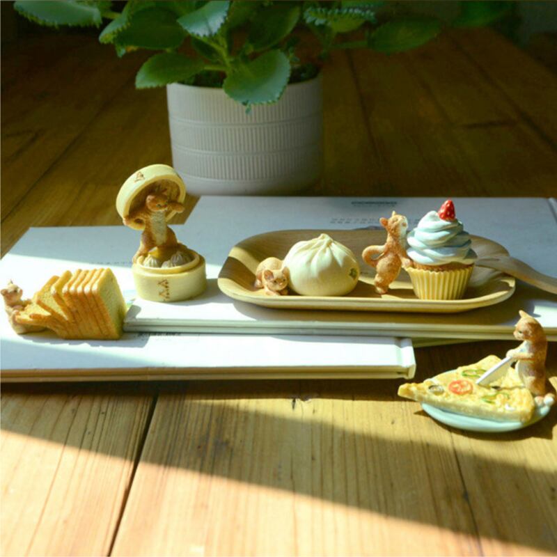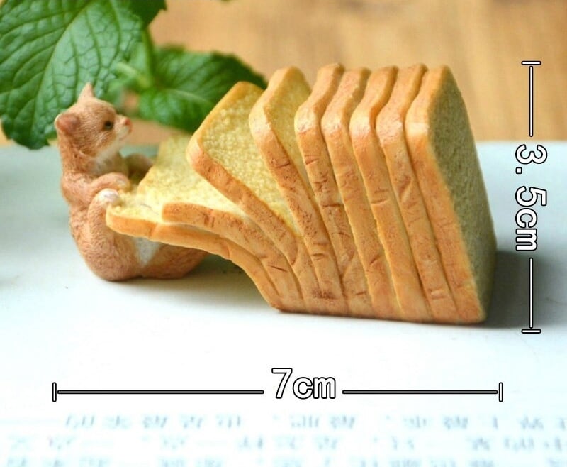 パンをつまみ食いしているネコの置物