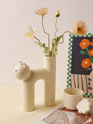 ネコ フラワーベース Creative Art Cat【3color】