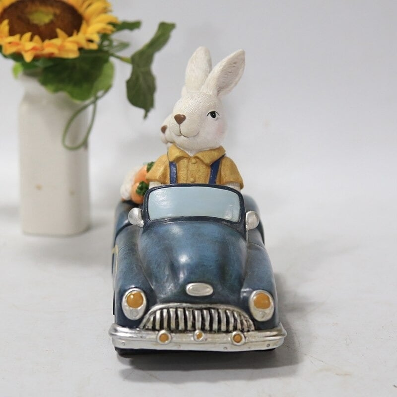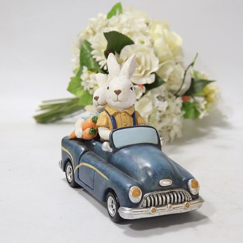 ウサギ 置物 Rabbit Couple Drive Classic Car